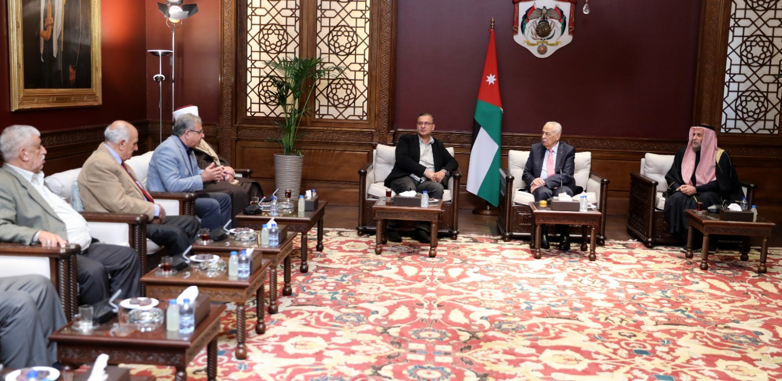 وطنا اليوم – التقى رئيس الديوان الملكي الهاشمي يوسف حسن العيسوي، اليوم الخميس، في الديوان الملكي الهاشمية وفدين من جمعية نعلين الخيرية وأبناء عشيرة القبات، في لقاءين منفصلين.