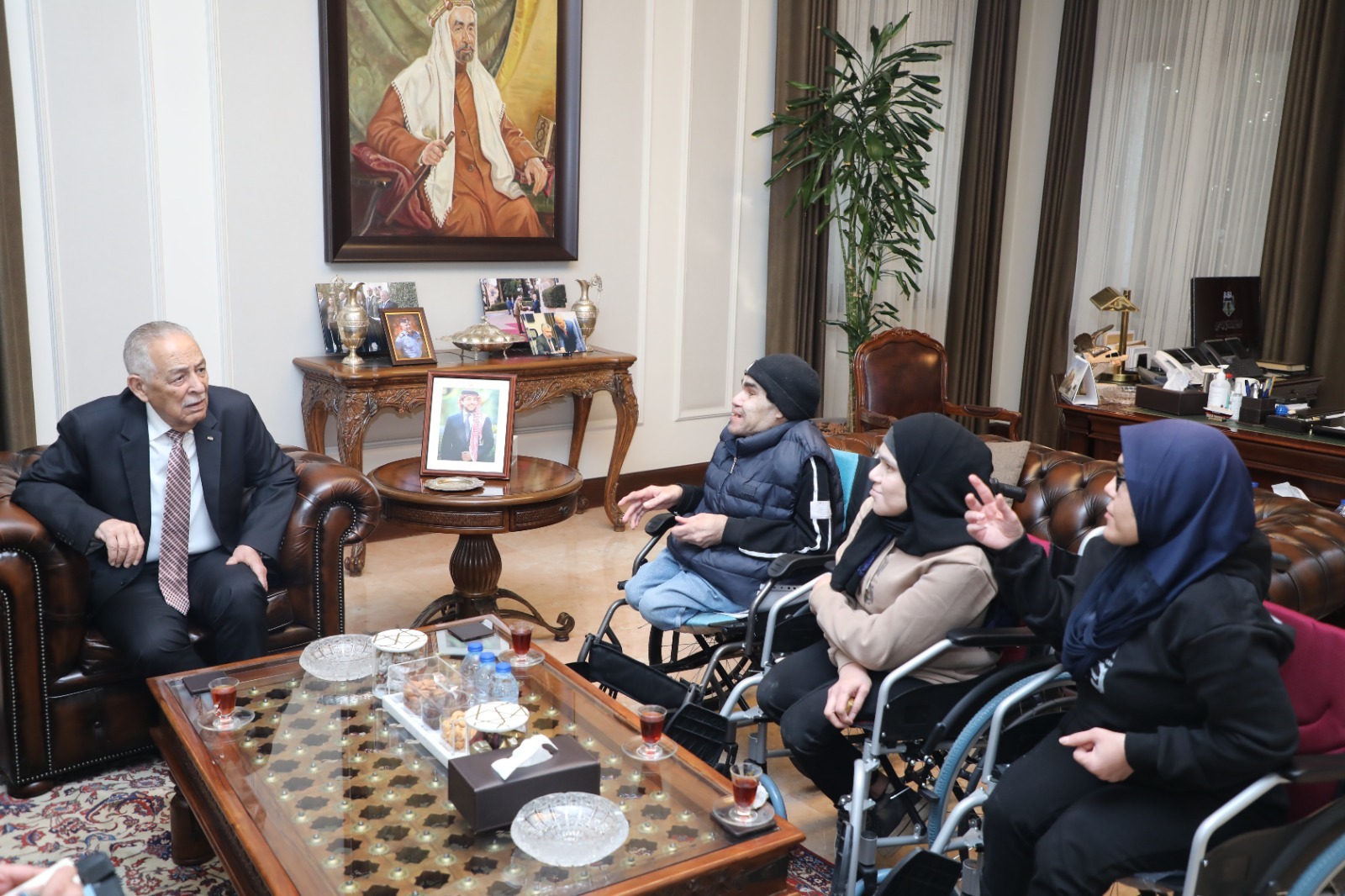 وطنا اليوم – بناء على توجيهات جلالة الملك عبدالله الثاني، استضاف رئيس الديوان الملكي الهاشمي يوسف حسن العيسوي، صباح اليوم الأحد، أسرة أردنية تجسد معاني الصبر والتعفف، مكونة من ثلاثة أشقاء (شابتان وشاب) من ذوي الإعاقة، يواجهون ظروفاً معيشية قاسية تفتقر لأبسط مقومات الحياة الكريمة، وذلك للوقوف على احتياجاتهم والاستماع لمطالبهم بشكل مباشر.