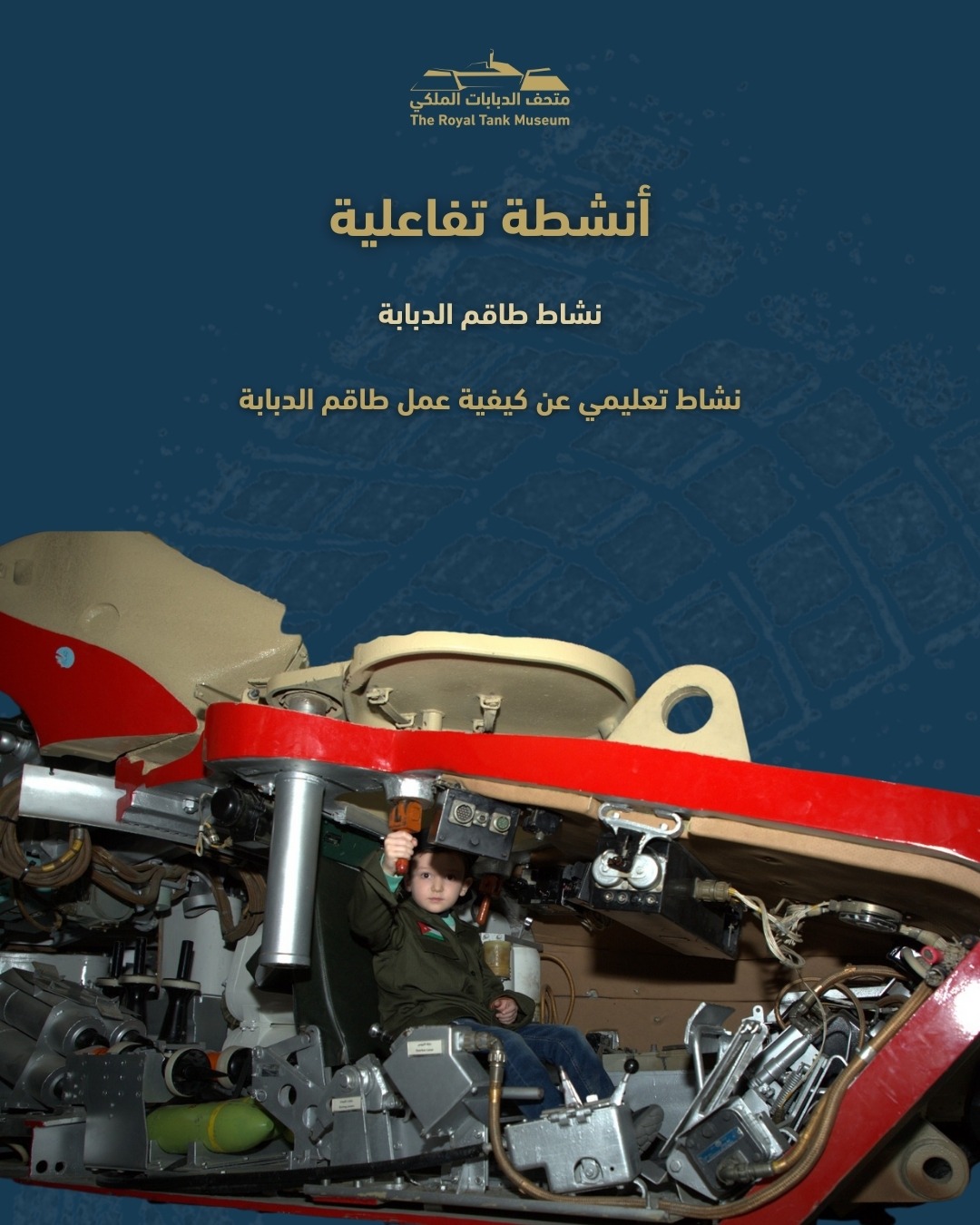 وطنا اليوم:أعلن متحف الدبابات الملكي عن تنظيم احتفال بمناسبة عيد ميلاد جلالة الملك عبدالله الثاني بن الحسين المعظم الرابع والستين والذكرى الثامنة لإفتتاح المتحف وذلك يوم الجمعة الموافق 30 كانون الثاني في مبنى المتحف.