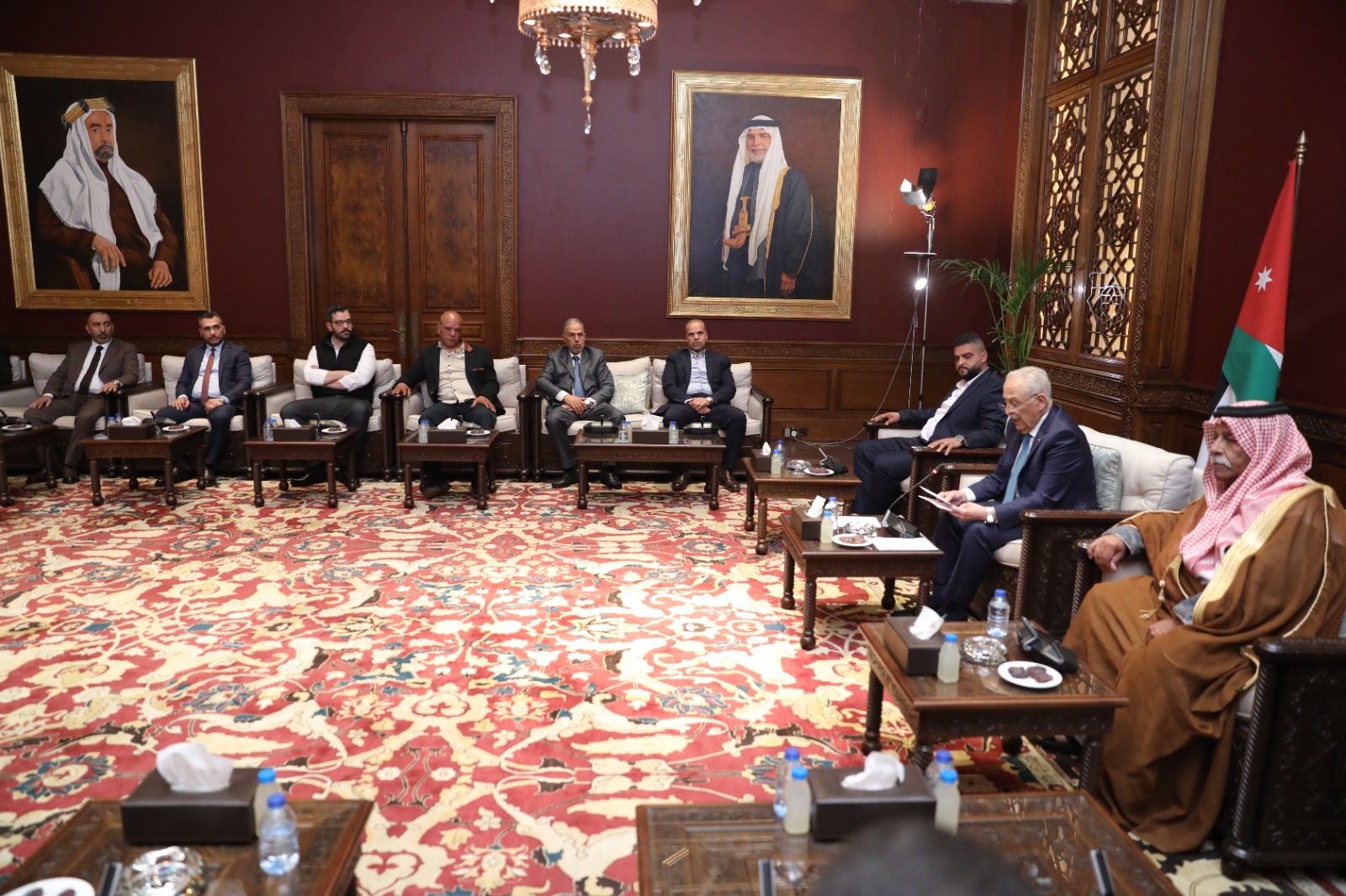 وطنا اليوم – استقبل رئيس الديوان الملكي الهاشمي، يوسف حسن العيسوي، اليوم الاثنين، في الديوان الملكي الهاشمي، وفداً من أعضاء نادي الطيبة بمحافظة إربد، ووفداً من أعضاء جمعية ديوان أبو الحاج، وذلك في لقاءين منفصلين.