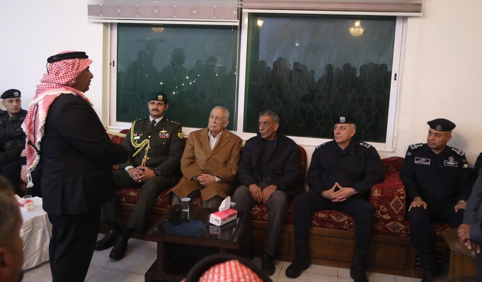 *وفي منطقة دابوق بالعاصمة عمان*، نقل العيسوي، خلال زيارته بيت عزاء شهيد الواجب العريف صبحي محمد الدويكات، إلى ذوي الفقيد وعموم عشيرة الدويكات، راجياً من الله العلي القدير أن ينعم على الشهيد بالرحمة والمغفرة، وأن يخفف عن أهله مصابهم، ويثبتهم على قيم الوفاء والعطاء التي جسّدها الشهيد في حياته ومسيرته العملية.