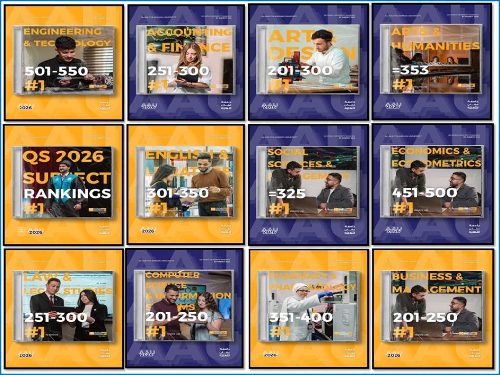 وطنا اليوم:تواصل جامعة عمان الأهلية تعزيز مكانتها الأكاديمية عالميًا، حيث حققت نتائج متميزة في تصنيف QS العالمي للتخصصات لعام 2026.