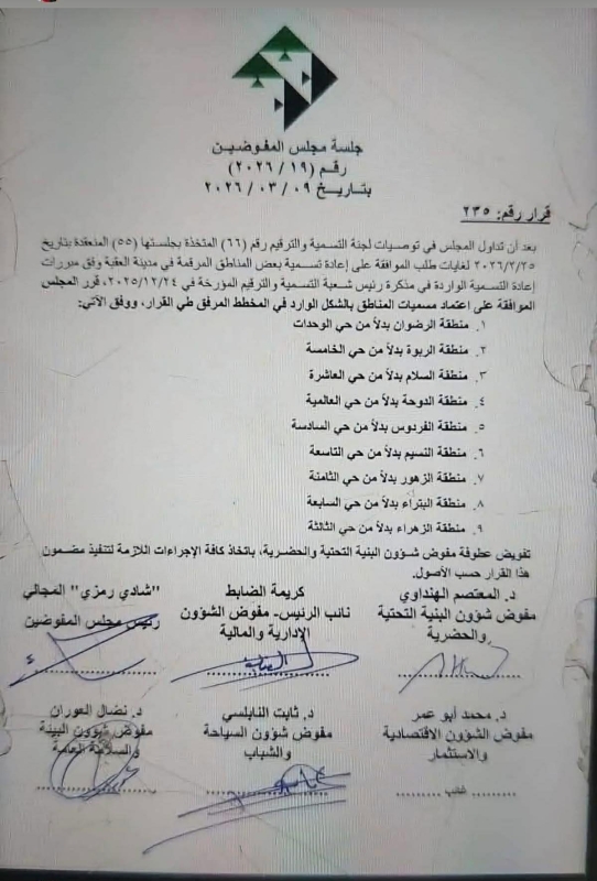 وبحسب ما ورد في القرار، فإن التعديلات جاءت ضمن إعادة تنظيم وتحديث مسميات المناطق بما يتماشى مع التطور العمراني في المدينة، حيث تم استبدال عدد من أسماء الأحياء بمسميات جديدة ذات طابع حديث.