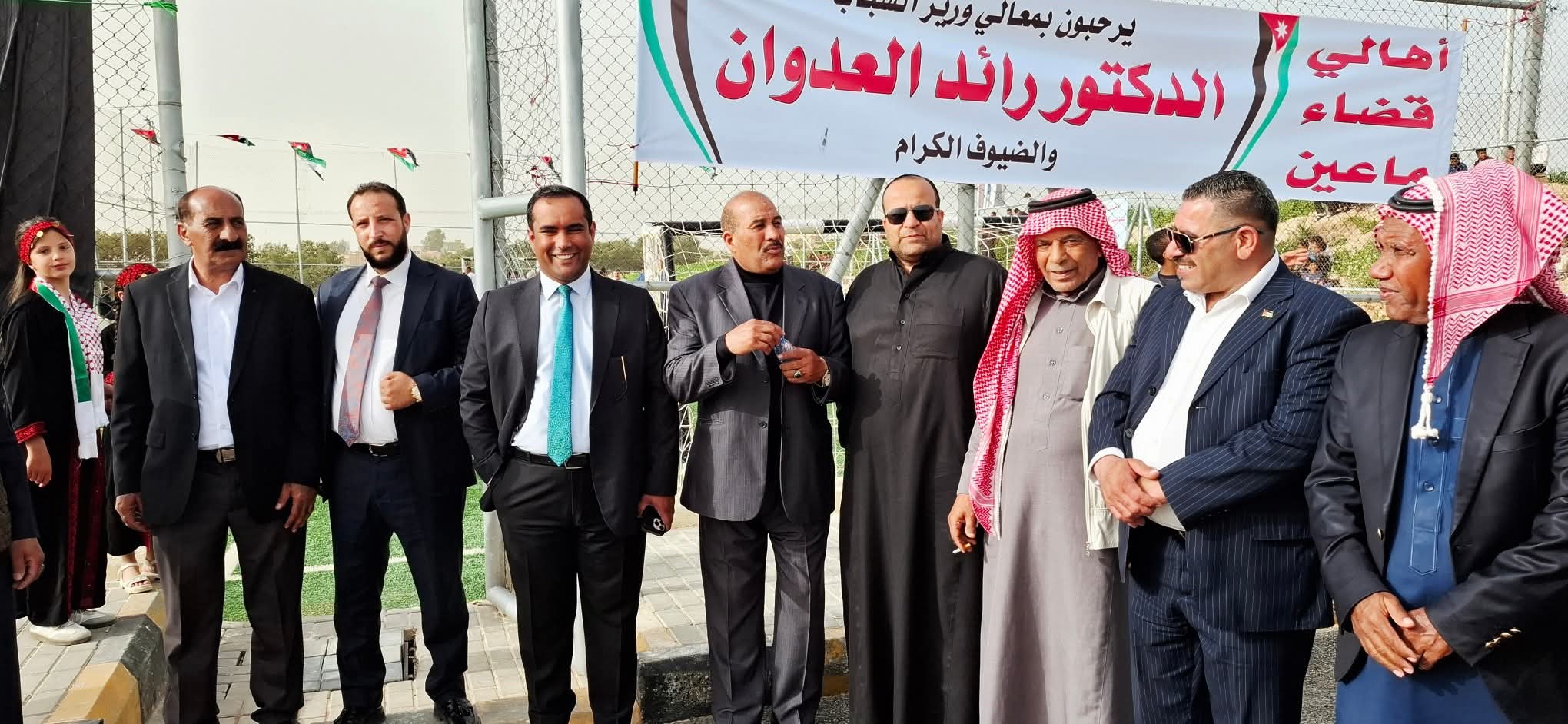 وقال وزير الشباب الدكتور رائد العدوان في كلمته بالحفل أن افتتاح ملعب نادي ماعين يشكل لبنة أساسية في بناء مجتمع محلي يمارس شبابه هواياتهم الرياضية ويجدون فيه متنفساً لمواهبهم وطاقاتهم، مشيراً إلى أن وزارة الشباب تعمل باستمرار على دعم الأندية والمرافق الرياضية وتوسيع انتشارها في مختلف المحافظات، إيماناً بدور الرياضة في بناء الإنسان وتعزيز روح الإبداع والتميز لدى الشباب.