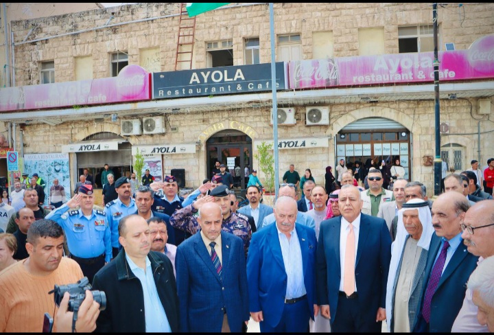ومع بداية الحفل ارتفعت الراية الأردنية خفّاقة على أعلى سارية في قلب المدينة، في مشهد مهيب تزامن مع عزف السلام الملكي، حيث علت الهتافات وتوشّحت المكان مشاعر الولاء والانتماء.