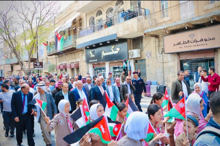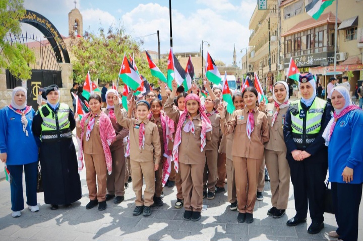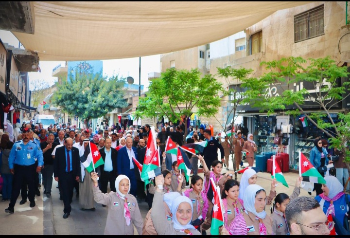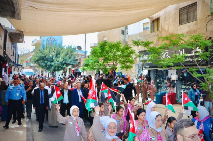 كما شهدت الفعالية مسيرة وطنية حاشدة قادتها فرق كشافة اللاتين جسّدت وحدة الصف، واختُتمت بإطلاق 300 بالون بألوان العلم الأردني في ساحة السلام، لترتسم في سماء مادبا لوحة احتفالية نابضة بالحياة، تعكس روح الفرح والاعتزاز.