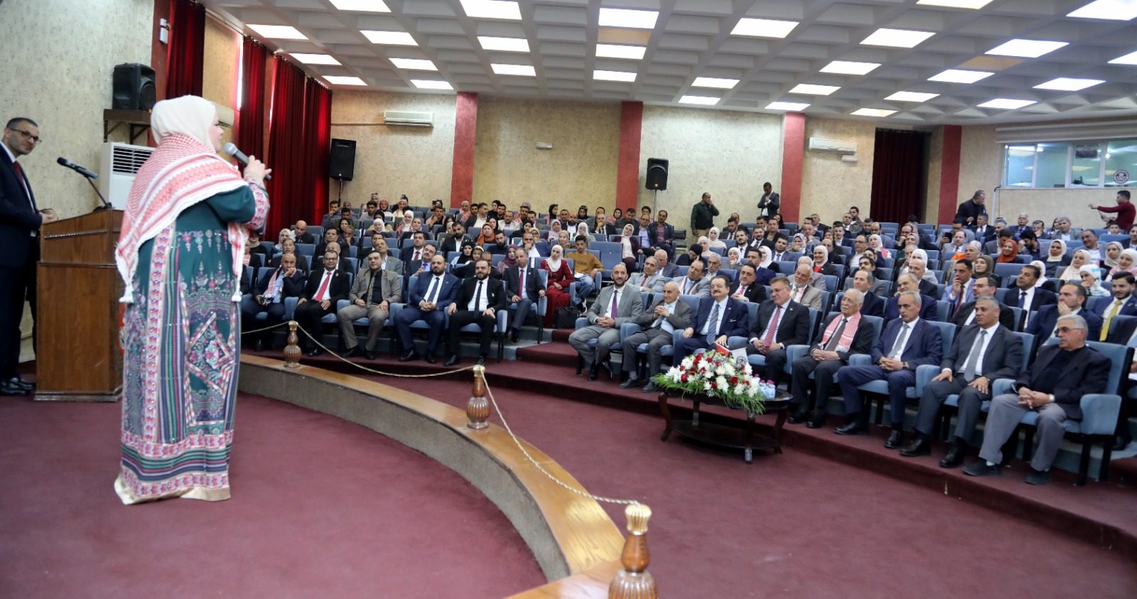 وبدأ الحفل، الذي احتضنه مدرج الكندي، بالسلام الملكي الأردني وآيات من الذكر الحكيم، تلاها عرض فيديو جسد أهمية العلم الأردني بمجموعة من الفقرات التي استعرضت المحطات التاريخية للعلم الأردني وارتباطه الوثيق بإنجازات القيادة الهاشمية في بناء الدولة وتحديثها.