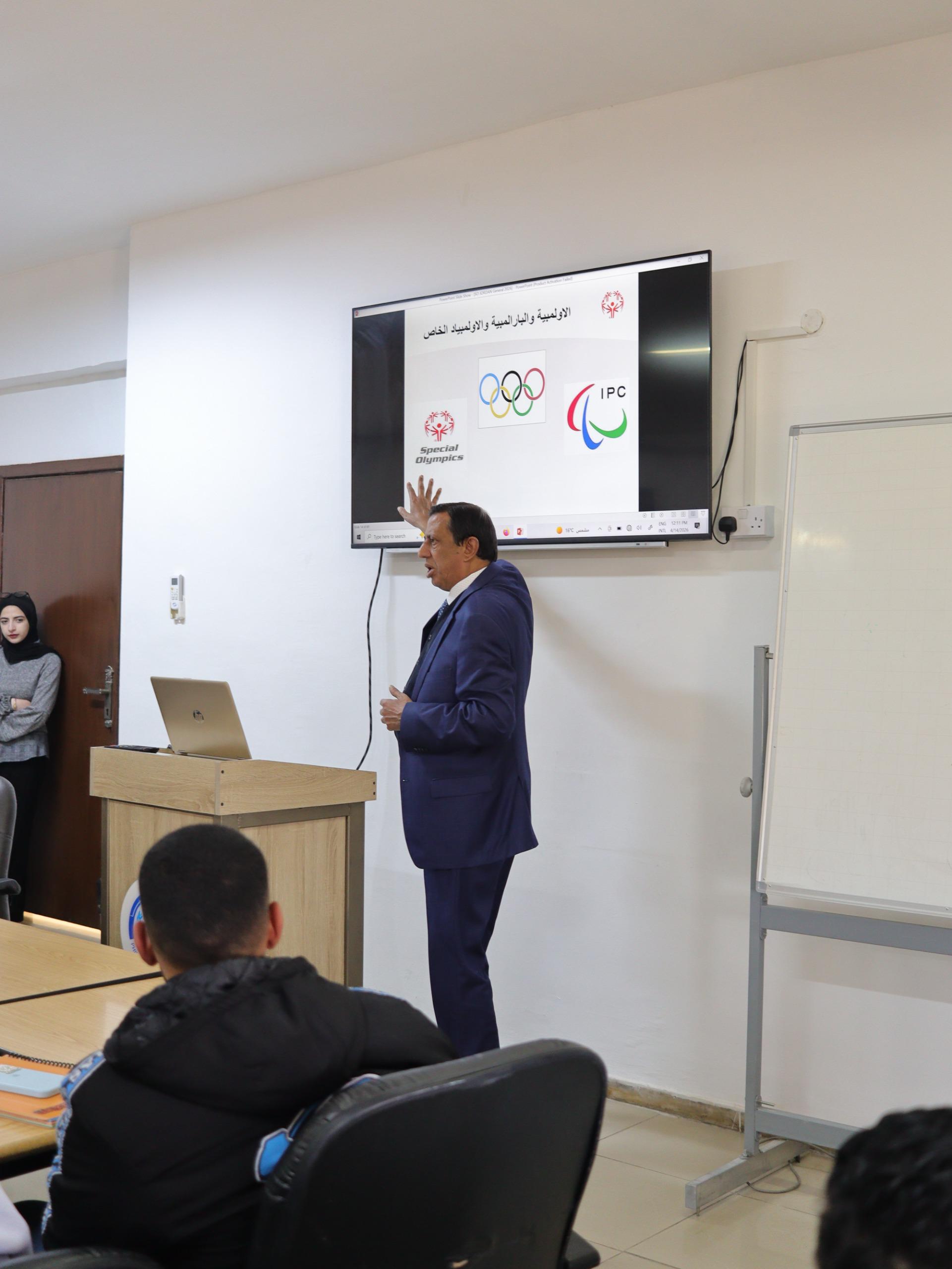 وطنا اليوم:نظّم قسم التربية الرياضية في كلية الآداب والعلوم التربوية ندوة بعنوان: (الأولمبياد الخاص وذوو الإعاقة الذهنية)، قدّمها مدير الأولمبياد الخاص الدكتور علي الشواهين، بمشاركة مديرة برنامج المدارس الدامجة في الأولمبياد الخاص، السيدة فاتن حسونة، بحضور عميد كلية الآداب والعلوم التربوية الأستاذ الدكتور عمر الكفاوين، ورئيس قسم التربية الرياضية الأستاذ الدكتور عبدالباسط الشرمان.