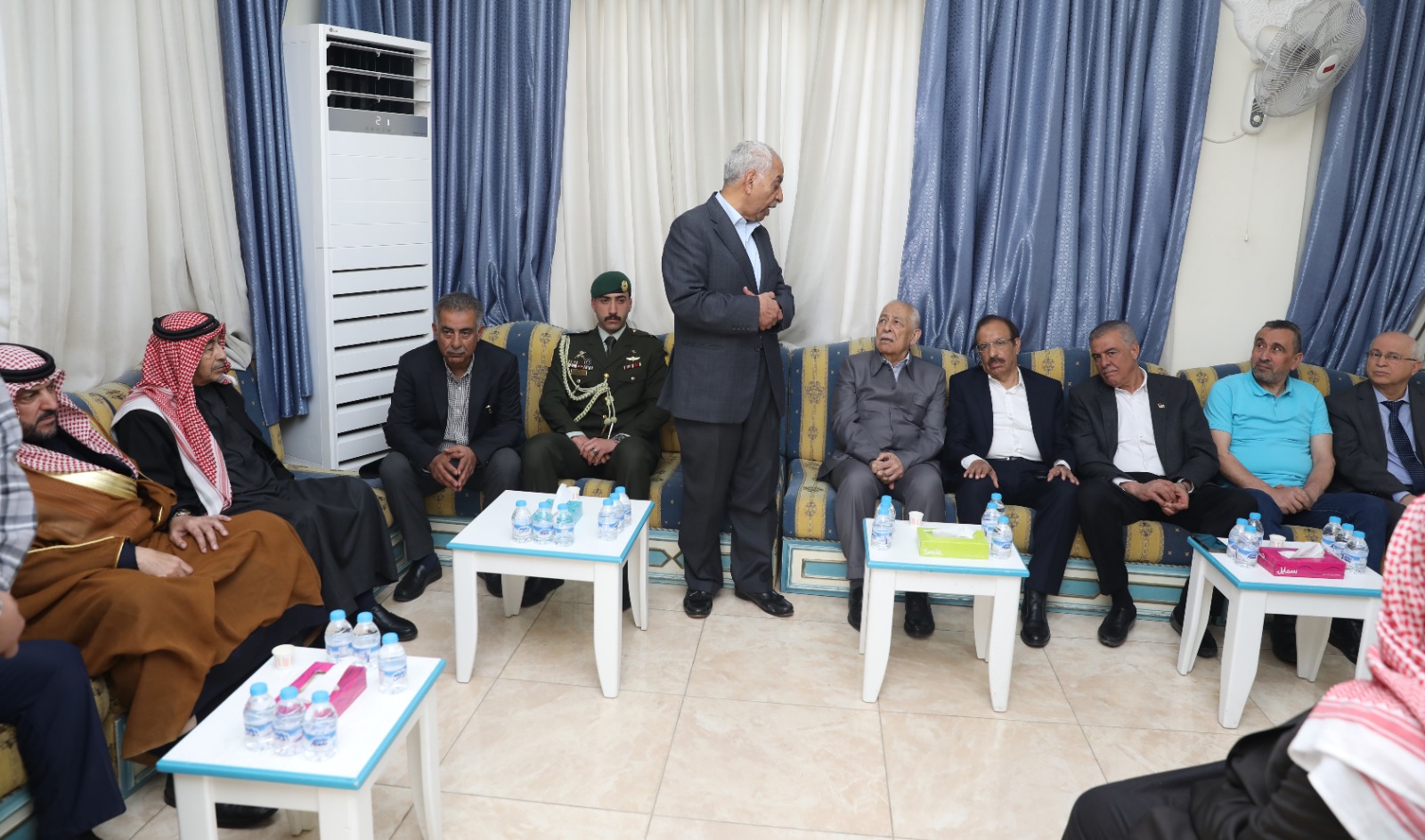 *وفي منطقة جبل الحديد بالعاصمة عمان* نقل العيسوي، خلال زيارته بيت عزاء المرحوم العقيد الركن محمد ضيف الله مناور الحديد، تعازي جلالة الملك وسمو ولي العهد إلى ذوي الفقيد وعموم عشيرة الحديد، سائلاً المولى عز وجل أن يتغمده بواسع رحمته.