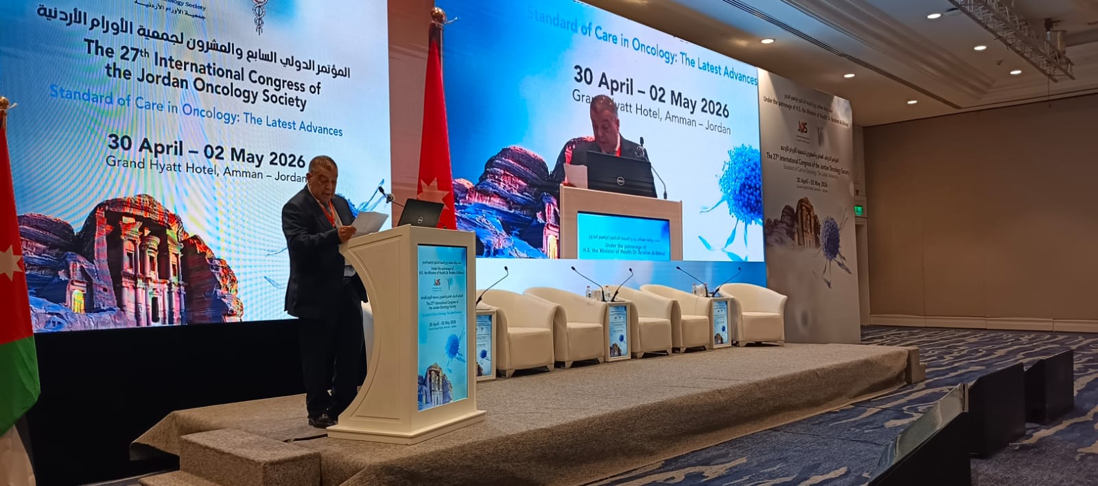 وطنا اليوم – افتتح وزير الصحة الدكتور ابراهيم البدور فعاليات المؤتمر الدولي السابع والعشرين لجمعية أطباء الأورام بنقابة الأطباء، والذي يُعقد على مدى ثلاثة أيام في فندق حياة عمّان.